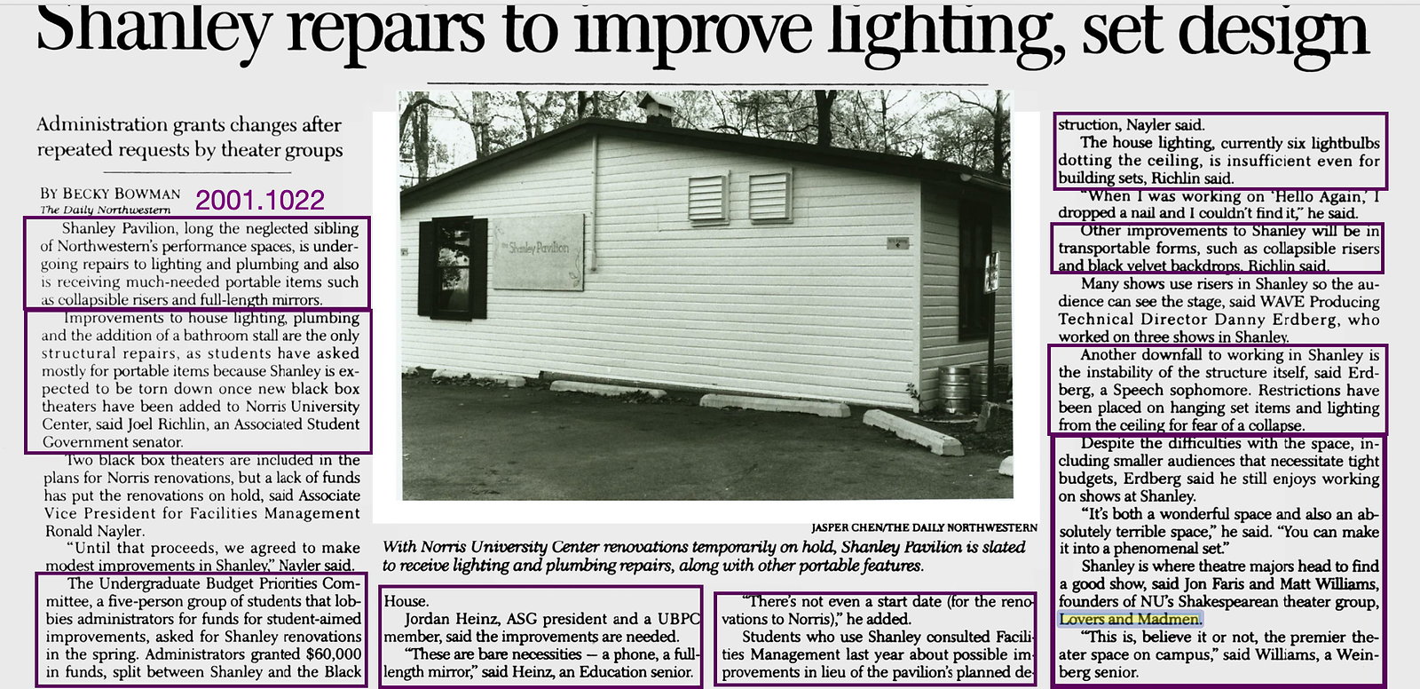- a. Solving Shanley. The Hub Of Northwestern Student Theater Needs Some TLC