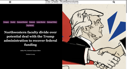 Daily NU 10-8-25: "Northwestern Faculty Divide Over Potential Deal With The Trump Administration To Recover Federal Funding"