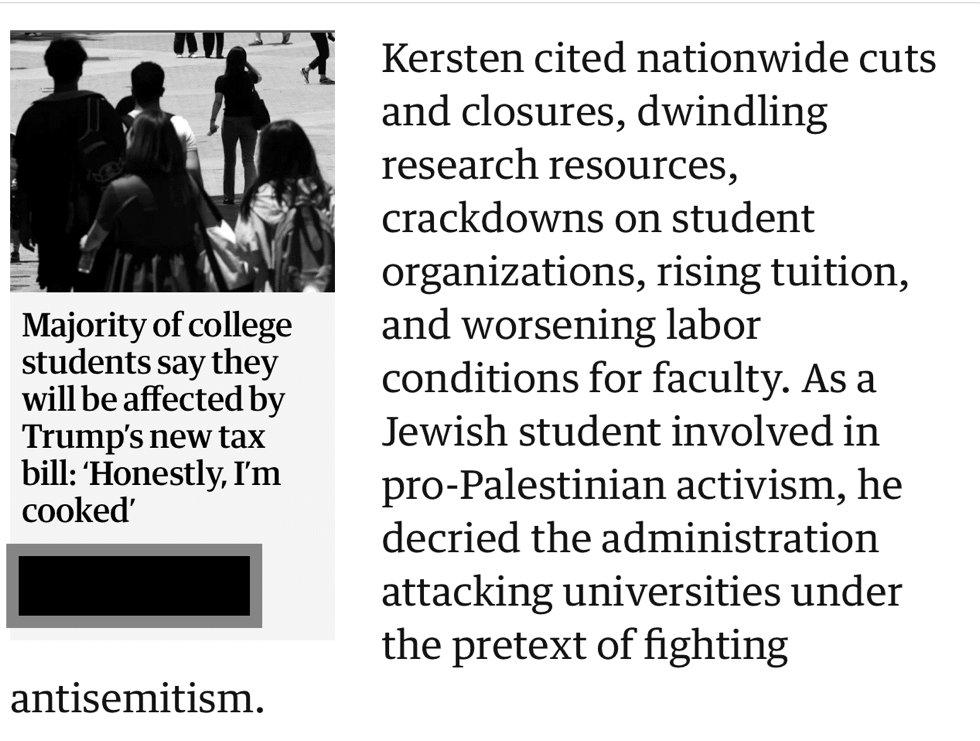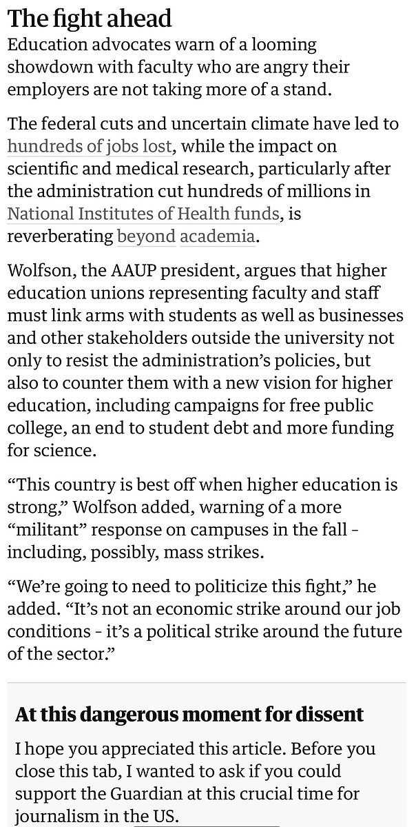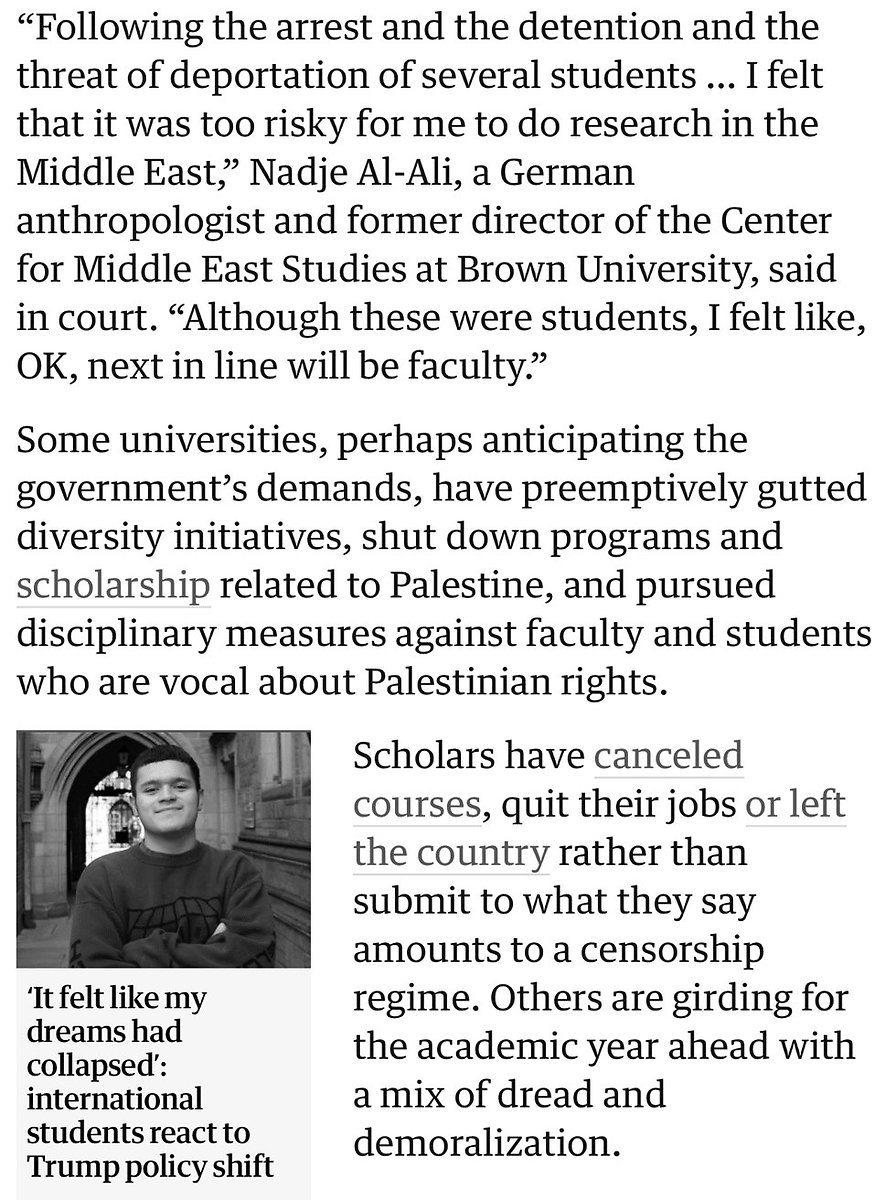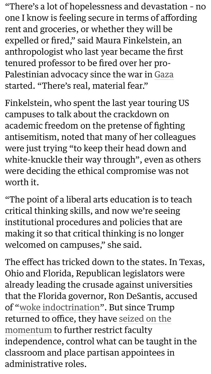 - b. The Guardian 8-3-25: 'Everyone is coming into fire' - students return to US campuses bruised and changed by Trump's assault