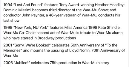 WAA-MU SHOW THROUGH HISTORY - C L I C K H E R E to see Pictures Album