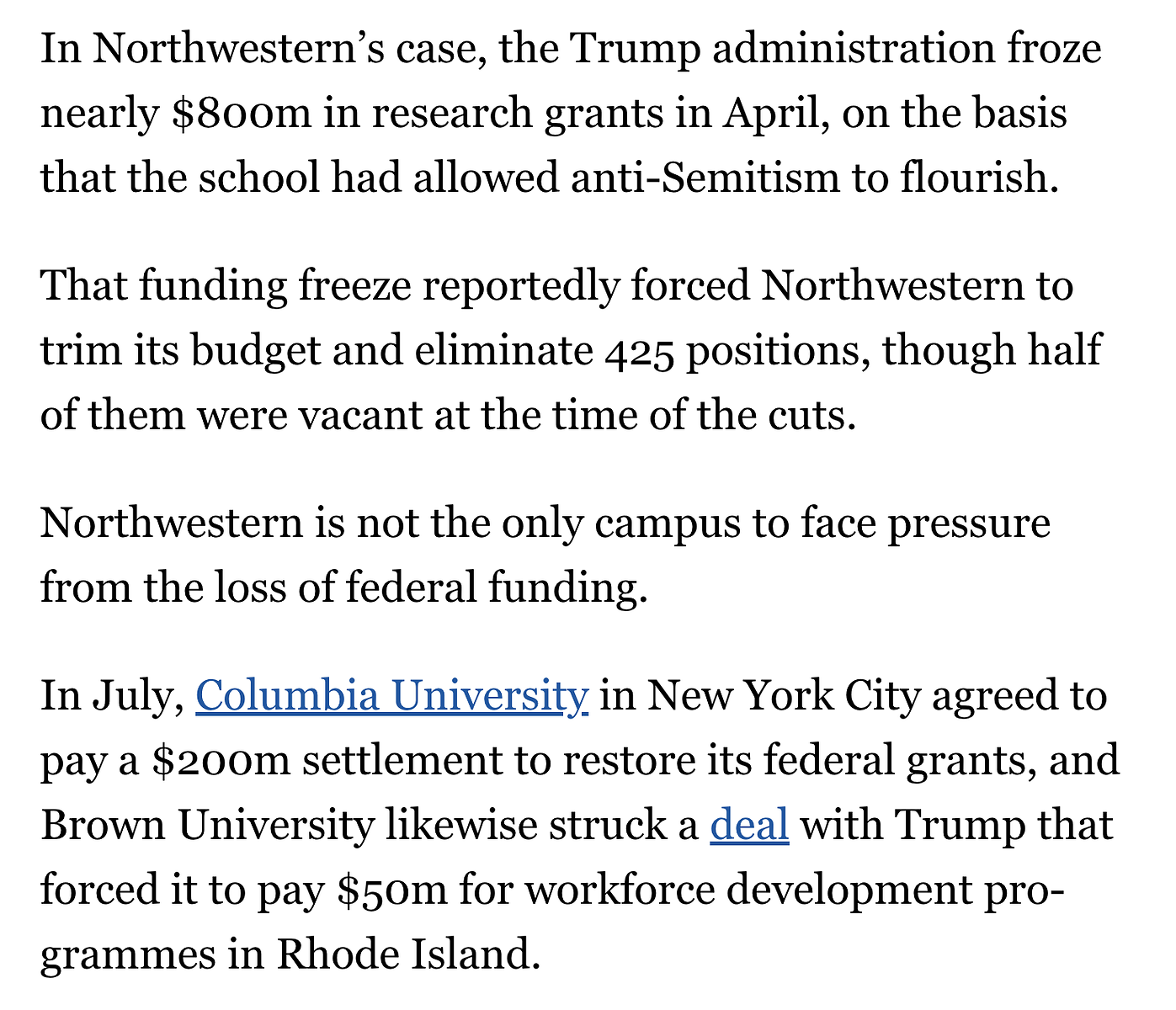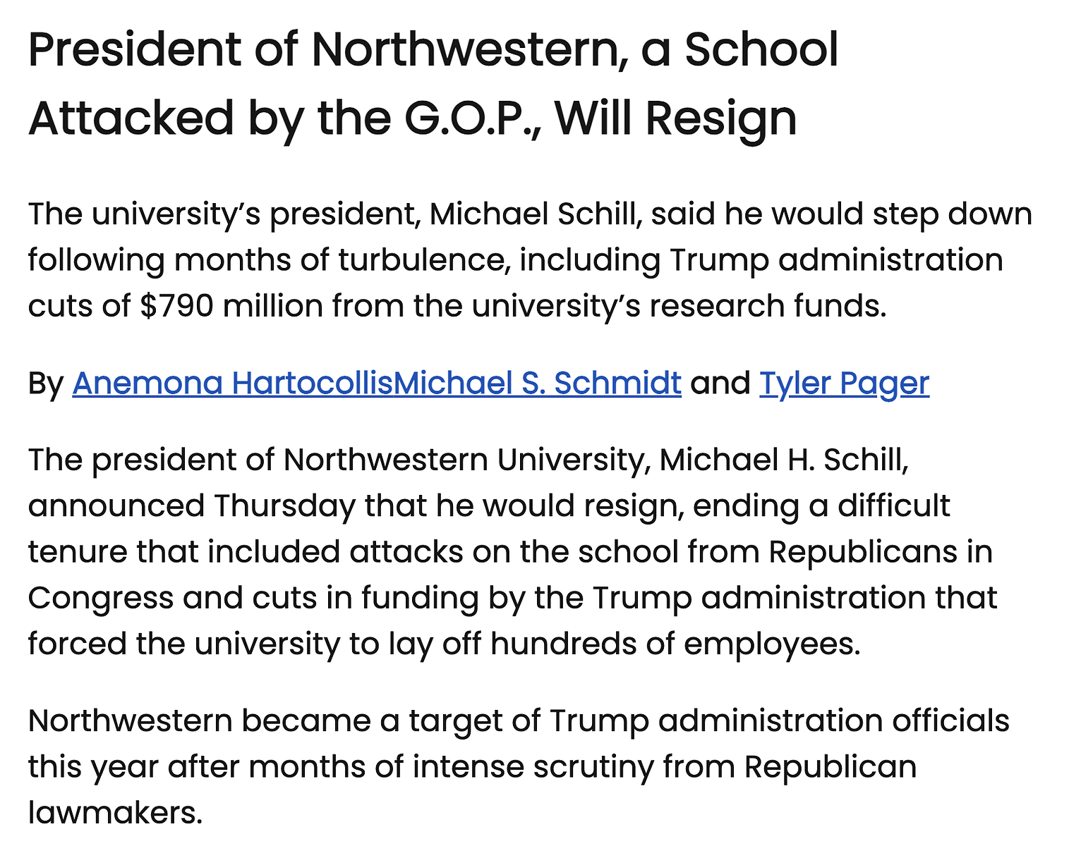 - e. Will Northwestern's Medill School Of Journalism be hurt if NU makes a deal with the Trump regime?