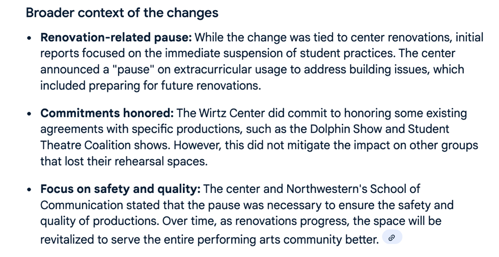An Article in The Daily Northwestern - 1/13/2020: "University to re-focus on remodeling vacant spaces, not breaking ground on new buildings" -